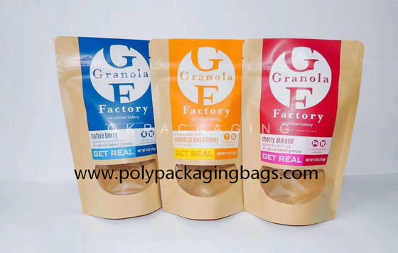Heat Seal Food Grade Kraft Paper Stand Up Pouch Ziplock Bag With Clear Window